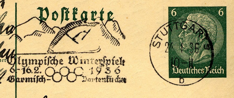 Vergessen hätten wir fast den 16. Februar 2009. Und weil die deutschen Skispringer gestern Mannschafts-Gold geholt haben zeigen wir einen Sonderstempel anlässlich der olymischen Winterspiele in Garmisch-Partenkirchen vom 6. bis 16. Februar 1936.
